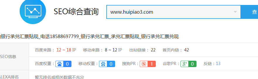 解决方案:给到我们域名的时候打开网址我们习惯性的xian去打开根域名,结果发现了他的根域名huipiao3.com未跳转到www.huipiao3.com,然后我们在打开www.huipiao3.com这个二几域名发现还是不跳转根域名,所以断定未做301的域名跳转。301Z定向有利于网站首选域的确定,对于同一资源页面多条路径的301Z定向有助于URL权重的集zhong,所以我们让客户提供给我们域名的权限我们进行了域名的解析让其跳转。